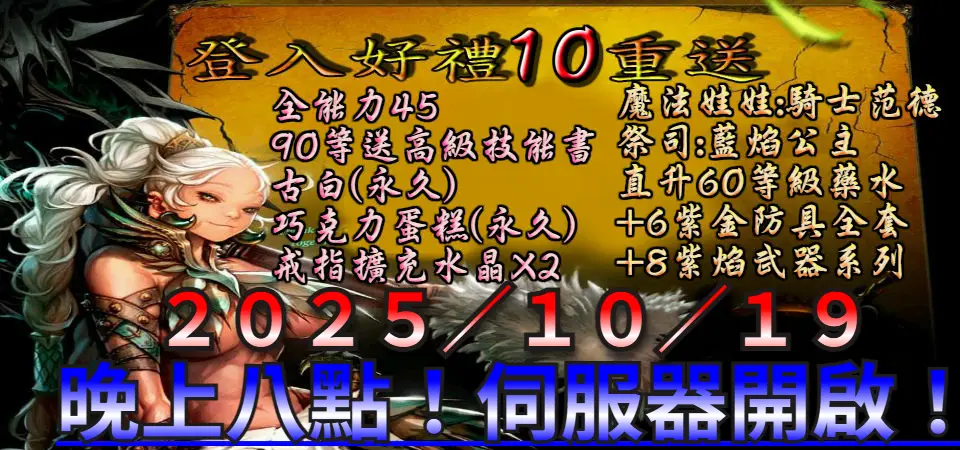 (開服當天晚上 12點整理 發送獎勵置倉庫)